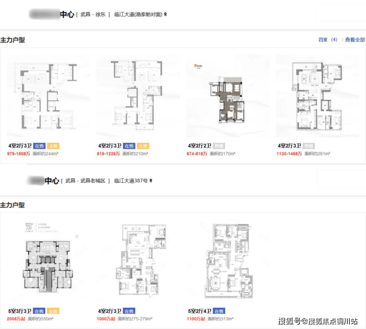 区域内两个代表性的顶豪项目:XX中心在售产品为约275-550㎡大平层,XXXX中心尾盘在售产品为约210-244㎡大平层