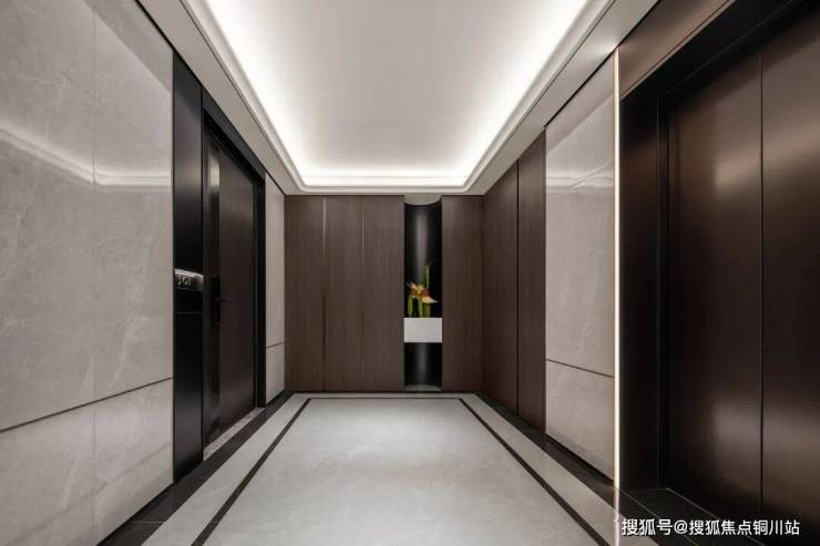 入户门外的独立电梯厅,就像是您家的前院,可以随心布置,放置鞋柜、绿植,让归家的仪式感从这里开始 。