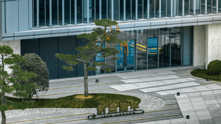 “跟其他小区的入口不同,隐翠采用枯山水造园的手法,打造远处有山,门口有园,进门有水的场景,从公共空间自然过渡到归家场景。很少有企业会在门口的公共界面上去花费更多成本建造,但国企新盛用一个拥抱的、大气的园林造景态度来迎接他尊贵的业主,这种大开大合的打造手法,展现了国企新盛的格局,打造在片区内独一无二的大宅风范。”项目景观设计大师董文这样介绍。