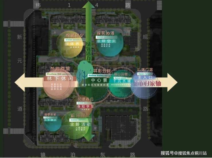 作为仅476户的精致生态社区,昆仑樾在公共空间打造上不遗余力,规划了“一园两轴九境”的园林景观。