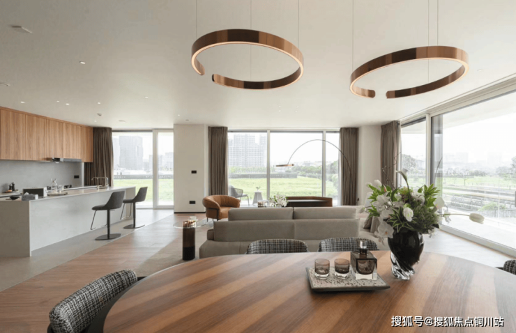 将落地“玻璃墙”引入高层建筑,约3.5M挑高、270°环幕视野,通透的落地玻璃与超大阳台,引光影入室,消融了室内外边界的同时,更让有限的空间得到了无限的延伸。
