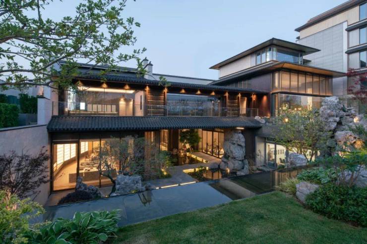 隐山项目从无锡世家的择居智慧中提炼出"运河水岸居,秋光园中寻"的核心设计理念。借寄畅园五十景图为空间原型,设计不同主题的园林重现画中空间。把园林的移步异景,借景,漏景,对景等手法用的恰到好处。