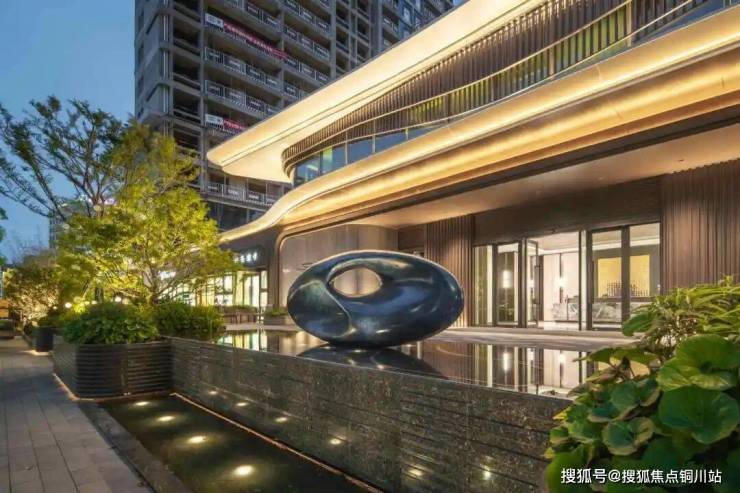 项目酒店式大门高约7.8米,长约30米,正对中庭轻奢水院景区,营造至臻归家氛围。