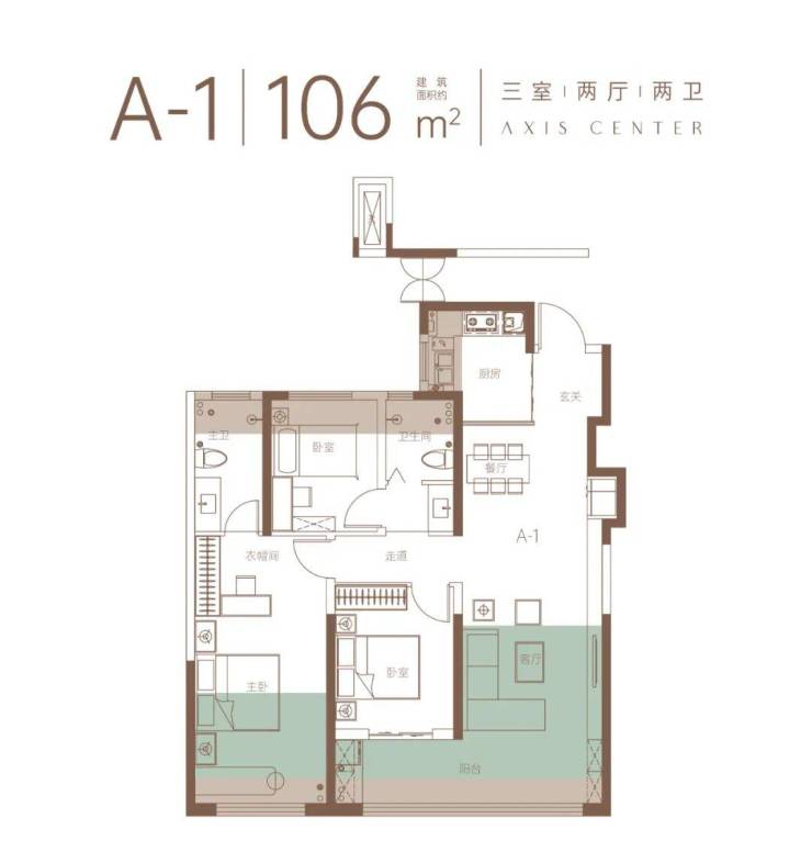 ©建面约106m²三室两厅两卫户型