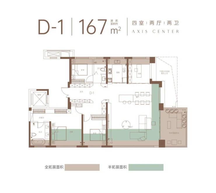 ©建面约167m²四室两厅两卫户型