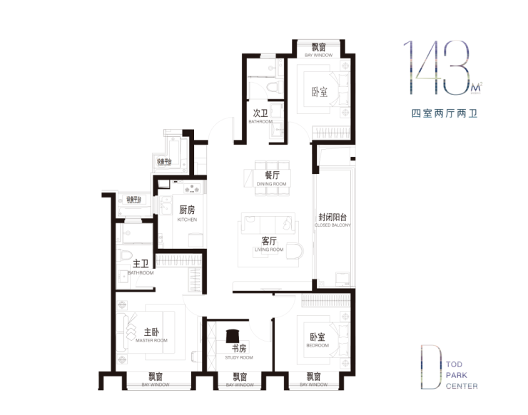 主卧大套房贯穿南北,自带衣帽间+卫生间+飘窗,气度非凡。
