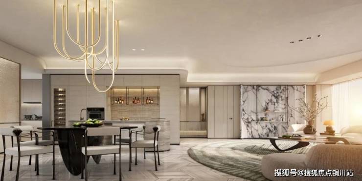 他甚至还是片区内唯一一个使用水晶木纹鱼骨拼接地板的项目……