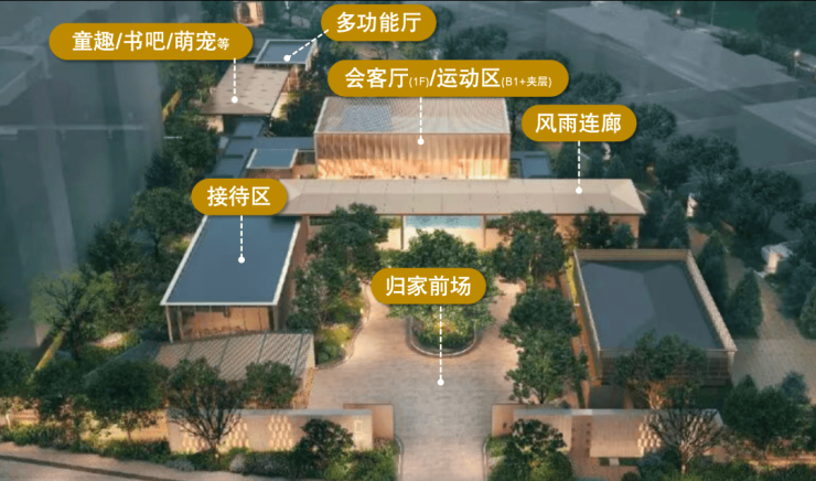 整个会所占地:约7000方,包含风雨连廊+下沉庭院,恒温游泳池、健身房、瑜伽房、羽毛球场、匹克球场、VIP棋牌、亲子阅读空间、儿童乐园等。
