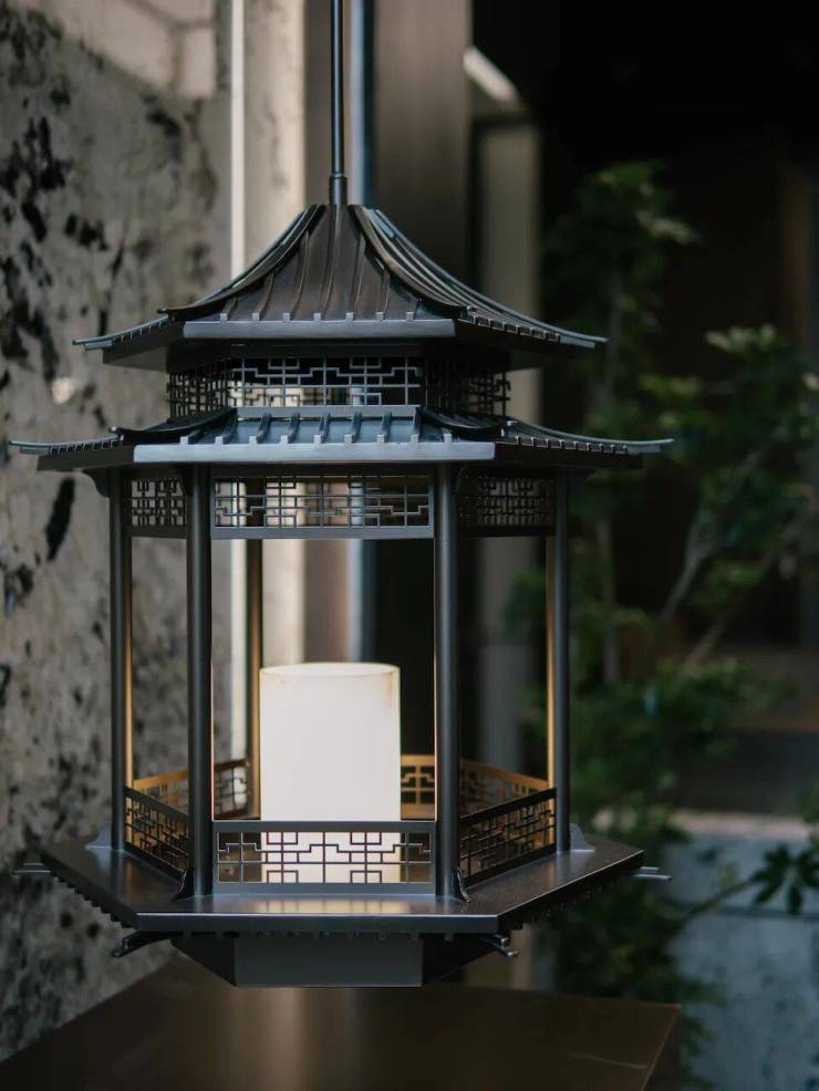 同时,项目入口公园,参考苏州留园的格局,在公园亭里有“月洞门”,运用“藻井”天花,在风雨连廊里有“挂落”,把苏州留园印象搬回家。