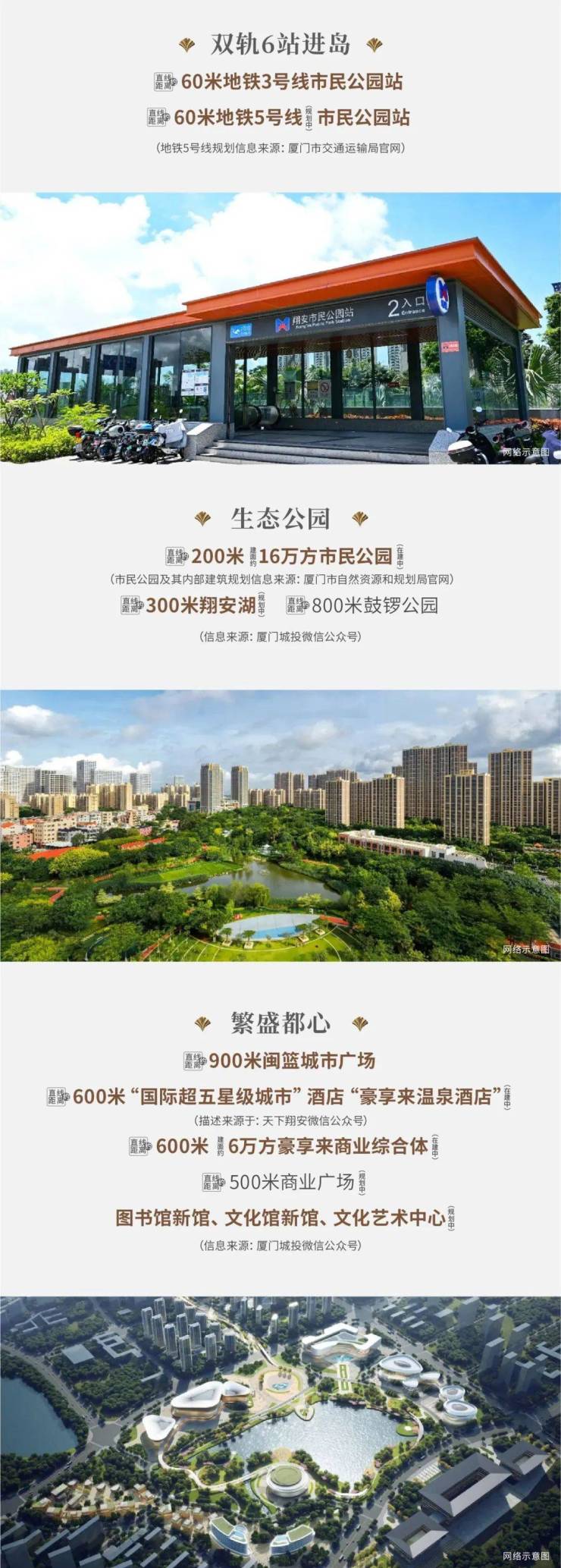 项目直线距离约60米即达地铁3号线市民公园站,规划中的5号线同站点换乘,一路之隔便是东山公建群(在建)。实小双十为邻,厦门实验小学(翔安校区)福建省厦门双十中学(翔安校区初中部)双省级重点名校。
