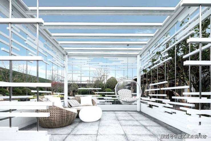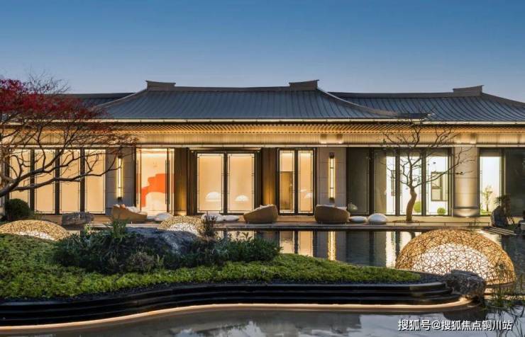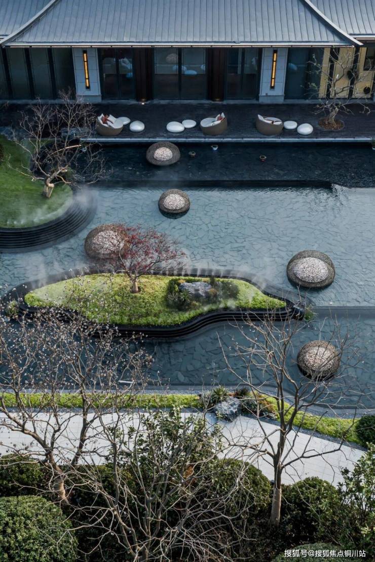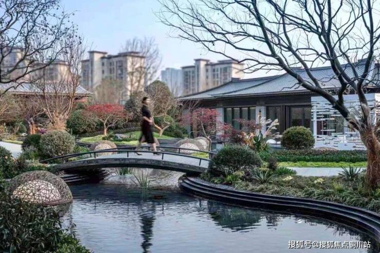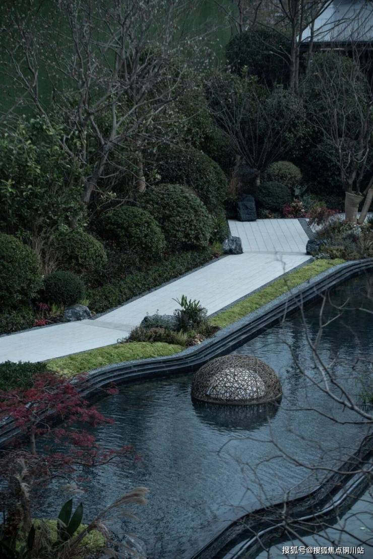 置身后院,山水绿植打造一派禅意空间,拱桥水景讲述着小桥流水人家的江南韵事。现代化的建筑搭建一片闲适的空间,邀邻里于此对弈,品茶赏景,往来交谈之间,感受生活的真意与自然的清新。