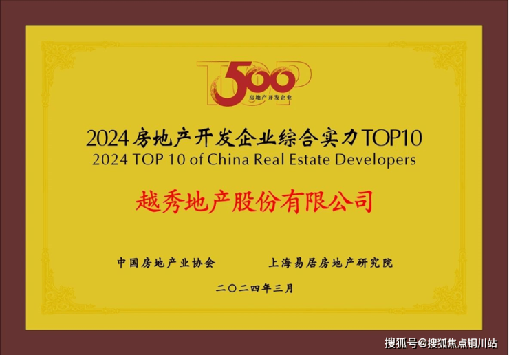 《2024房地产开发企业综合实力TOP500》排名,越秀地产位列第9位,相比去年上升5位,首次进入十强榜单。