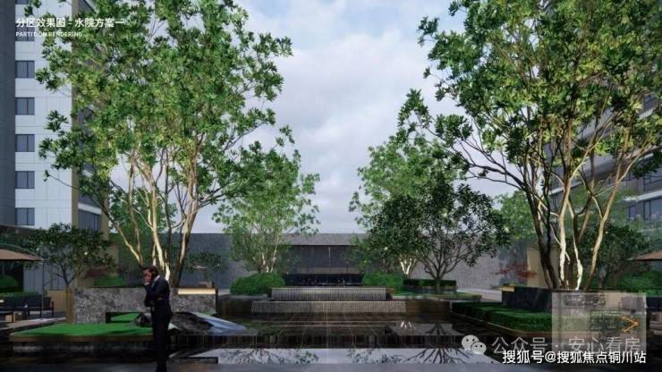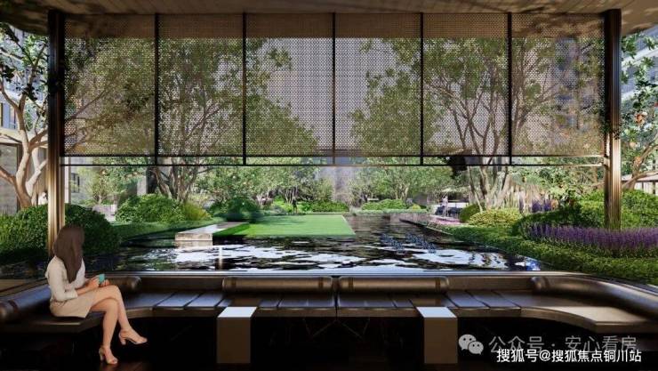 约1200㎡尊享气质水庭院,参考高端酒店式中庭水景,为归家增添不可多得的度假体验感。
