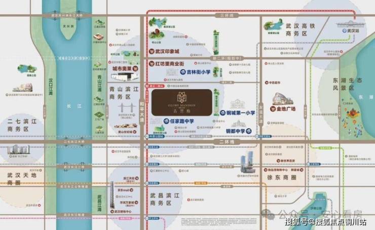 项目位于青山区青山滨江板块,和平大道上,建二商圈正核心,距离二环线约1.5公里,属于二至三环。