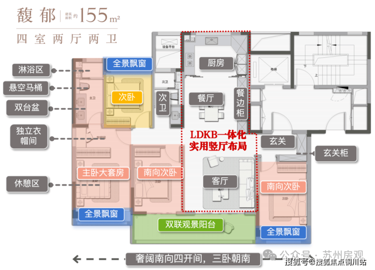 南向双套房,次卧套也是南向明卫,南北贯通大主卧超豪华配置、独立家政间+强大收纳体系,将居住的舒适度、功能性与仪式感完美融合。