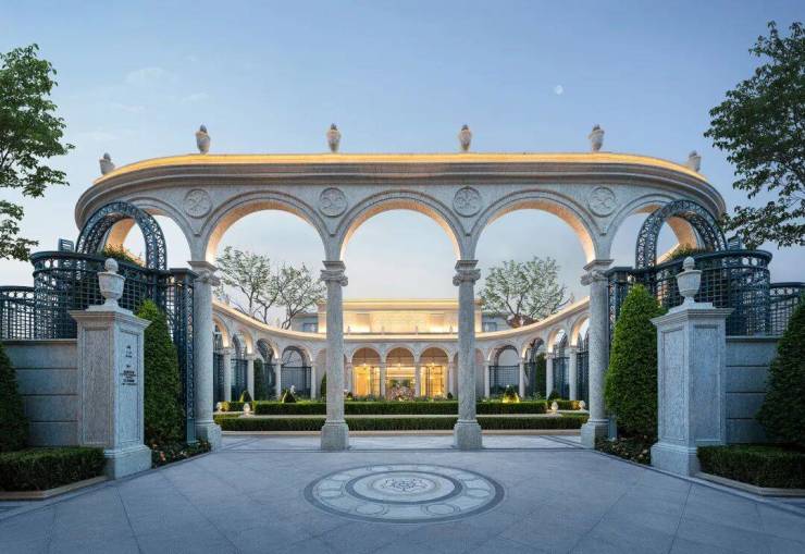 从效果图来看,顶部的装饰性圆顶、拱形门窗、装饰线条、柱廊,典型的新古典主义风格。