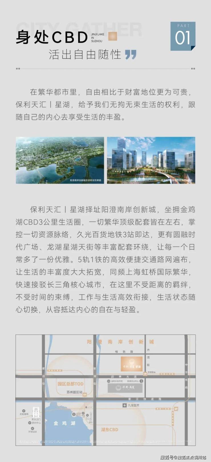 约3KM坐拥金鸡湖CBD精华配套,约500M星湖街,约1.5KM可达园区站“十字型”城际铁路枢纽、地铁及跨城轨交的TOD。