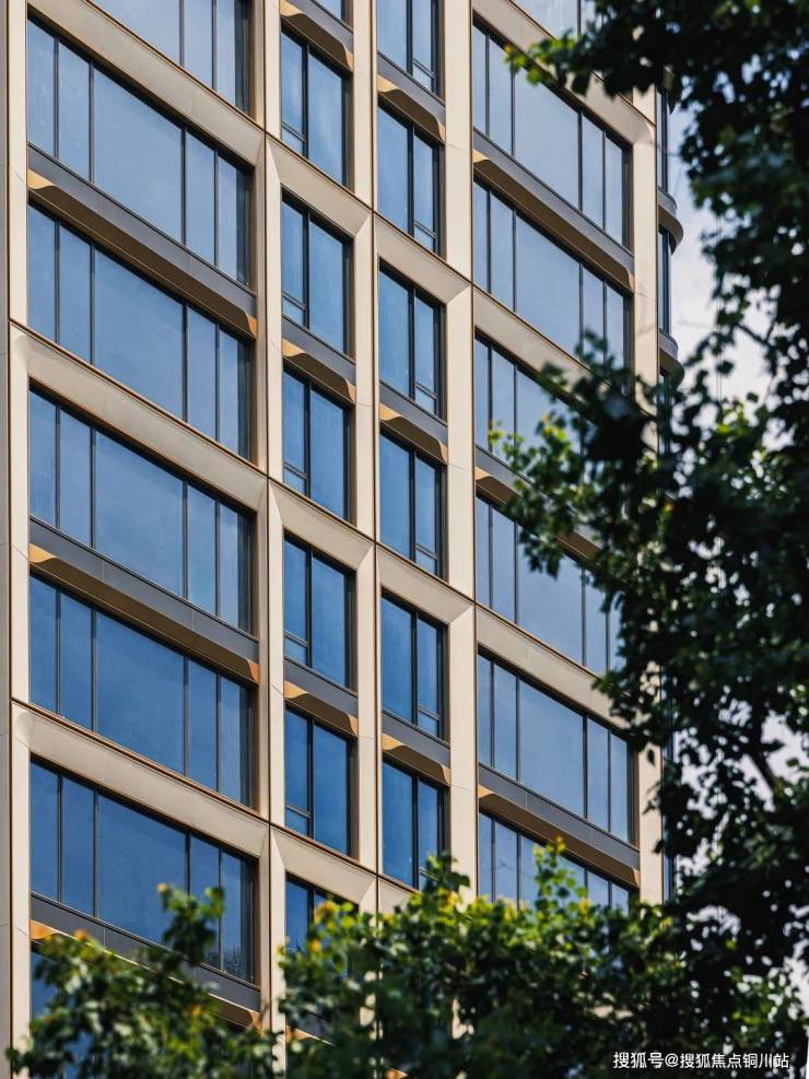 香槟金顶冠阶梯错落,米白仿石铝板温润如玉,搭配旭格玻璃系统窗,在具备艺术感的同时,高级的质感拉满。