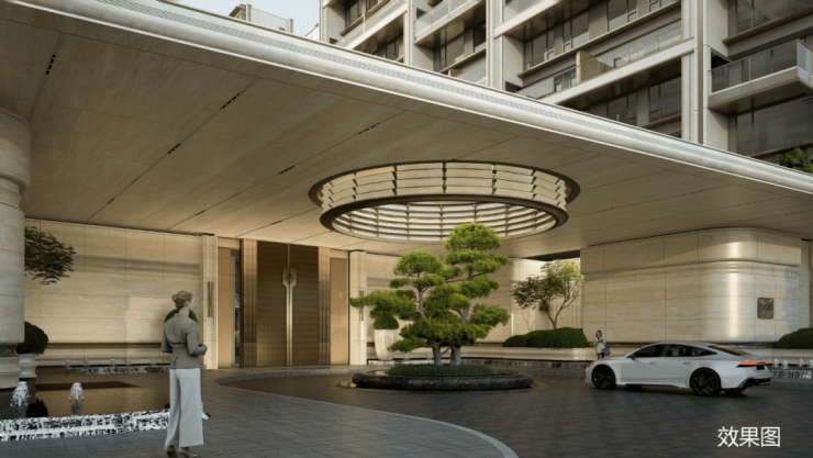 在归家动线方面,启园构建三进归家礼序:一进约20米环岛落客的仪式入口,二进下沉庭院与二重水院,三进地上地下双酒店式大堂。风雨连廊连接主要楼栋与配套,确保业主在雨天或烈日下归家从容无阻。地下车库首创“车马院”及“光厅入户”设计,将归家仪式感延伸至地下。从全龄聚场到礼序归家,启园以“场景思维”让每一处空间承载生活的温度与想象。