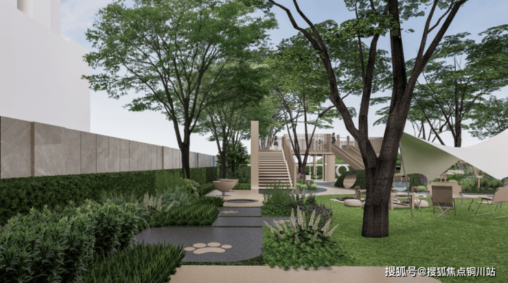 在社区的公共景观方面,琅誉充分利用了项目高出周边城市的台地高差,打造出“一轴七境,穿庭入园”的景观效果。