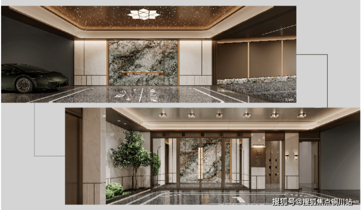 如果说琅誉的外立面是让整座城市都可以看得见的城市地标,还有一些独特的高奢美学,只属于琅誉尊贵的业主。比如引入了鎏金美学的奢华大堂。