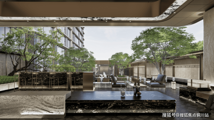 而在大门的营造中,更是以奢石,金属和玻璃组合成了浮光跃金的海派摩登风格,展现出了济南崇文尚礼的文脉基因。