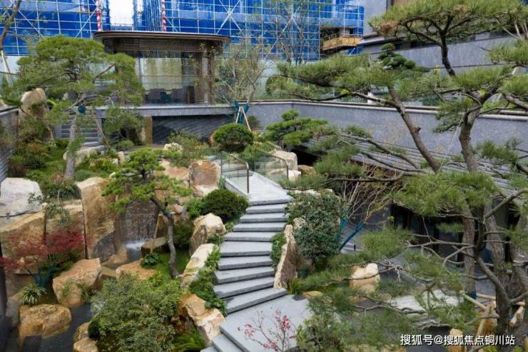 如果说规划与设计是对未来的承诺,那么实景呈现便是最有力的证明。云禧东方在产品的打磨上亦是精益求精,在实景示范区甄选珍材贵植加码意境,八棵黑松姿态万千,单棵价值达 30-60 万,蕴含“八方来财”之意。院墙用海蓝宝石材,折射百万年时光的深邃。静水边日本进口羽毛枫四季皆美,为生活注入诗意。太行金原石经老板亲选,斥资百万留存原始肌理,凝太行朝晖晚霞之姿。