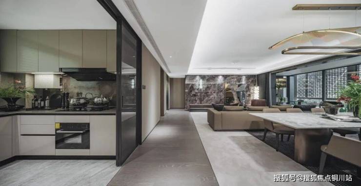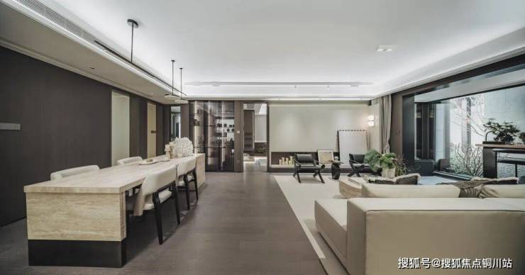 该户型餐、客厅都达到了约6m,尺度相当豪横!餐厅做一大排酒柜的同时,还能放得下12人的大圆桌!