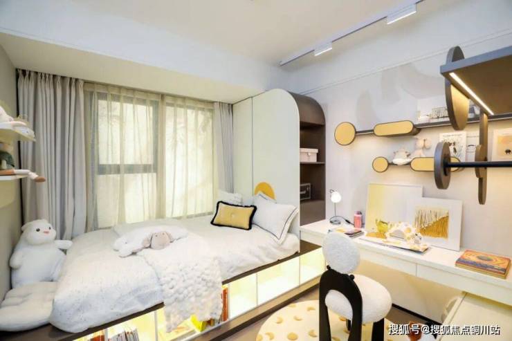这就使得项目的次卧甚至只用放一张90cm的小床,就能借用飘窗空间,做成一个约1.8m的大床,同时次卧也拥有了更大的活动空间!