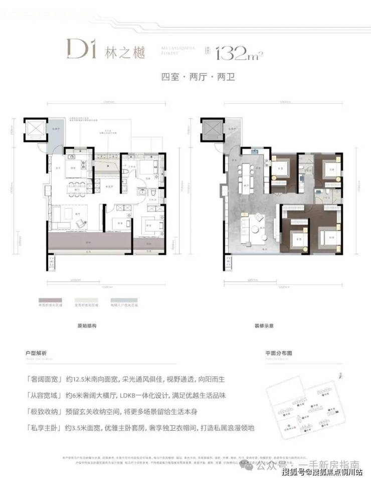 建面约132㎡的四室两卫,为二孩或三代同堂大家庭量身定制。