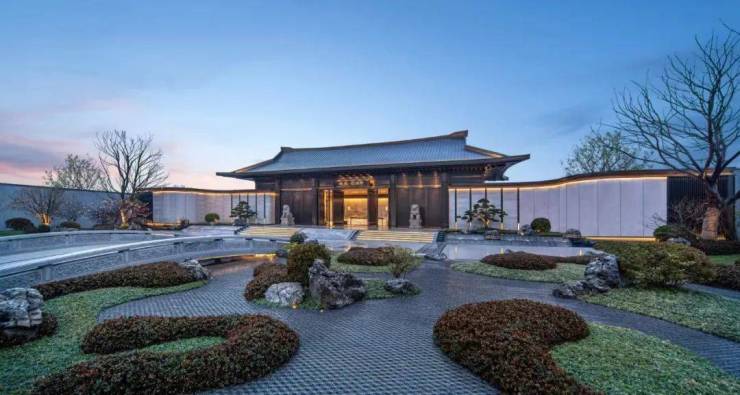 建筑风格:建发观云府以王府中式元素与现代材料碰撞,屋顶重宇飞檐,凌空舒展,大气对称的建筑设计,将尊崇礼序以建筑语言融入当代,展现出东方传统建筑的秩序与尊崇。
