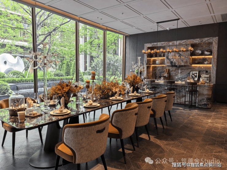下沉庭院汲取西班牙阿尔罕布拉宫的精髓,阵列跳泉错落有致,乌桕与油橄榄相映成趣。幻影蓝水台与高艺术雕塑重现宫廷水轴的尊贵仪制,呼应庭院的珍贵,为璀璨生活埋下伏笔。三时有花,四季见绿,每一次驻足,皆是一场与自然和艺术的亲密对话。