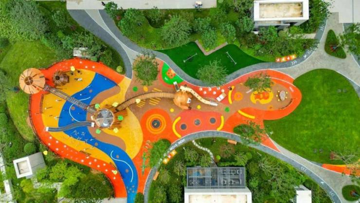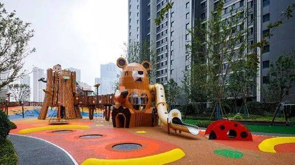 约3300㎡森悦乐园五彩斑斓,温暖明亮,滚轴滑梯、路径游戏、攀爬绳、科普游戏围栏、学步围栏等游乐设施,交织成孩子们最爱的儿童乐园的样子。整个儿童乐园以“小熊玺宝探险之旅”为主线,让孩子们在森林探索中,体验自然的未知与新奇。