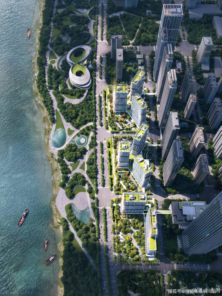 长江天际立面灵感源自宋代马远的十二水图,将水图中长江万顷的绘画笔触,提炼为建筑造型语汇,与长江波纹形态呼应,将当代国际范的建筑与武汉本土的长江水文化结合起来,构成标签性城市封面级别的建筑形象。