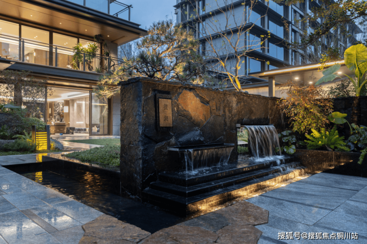 名贵树种映衬流水叠泉,自成一体的生态单位,构成日常第一重归家仪式