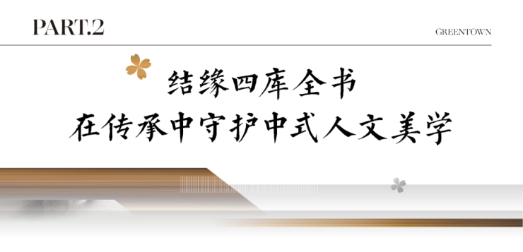 每个国人对生活的愿景,或多或少都有被《四库全书》所涵盖的传统文化所浸染。一如书中山川、古迹、考工、艺术等类目,便是绿城在营造中式建筑与园林时,曾无数次汲取文化养分与内涵的源地。