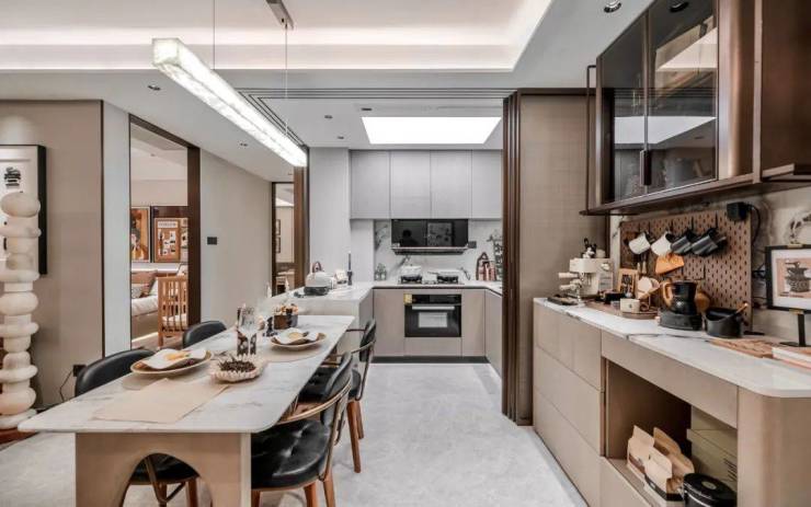 而且在收纳力增强方面,项目嵌入了万科创新设计——S墙。建面约107㎡样板间S墙多功能收纳玄关柜,面积高达约5.3㎡(投影面积),装下80双鞋不成问题;餐厅西侧的S墙,可实现对开门冰箱放置。