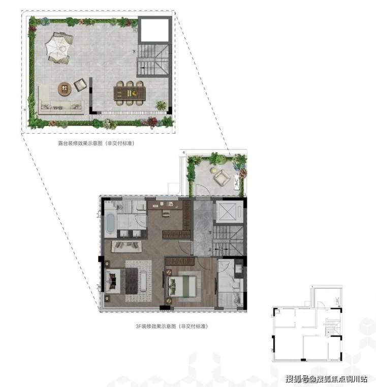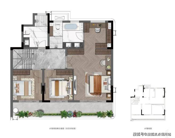 三楼也是双套房,朝北带露台,并且顶楼还送一个大露台(无需二次改造)。