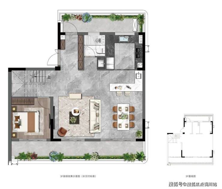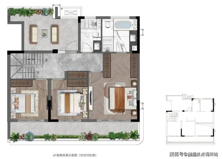 三楼是超大行政套房,并带了了一大露台,同时还赠送一个无需二次改造的顶层露台。