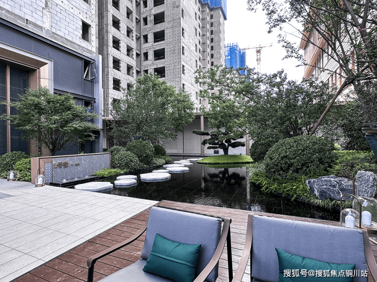 二进:璞石听涛,叠石落水,是感官和听觉开启的旅程。传承园林文化内涵,别有洞天之感,浮岛踏水行,沉浸自然风景里。