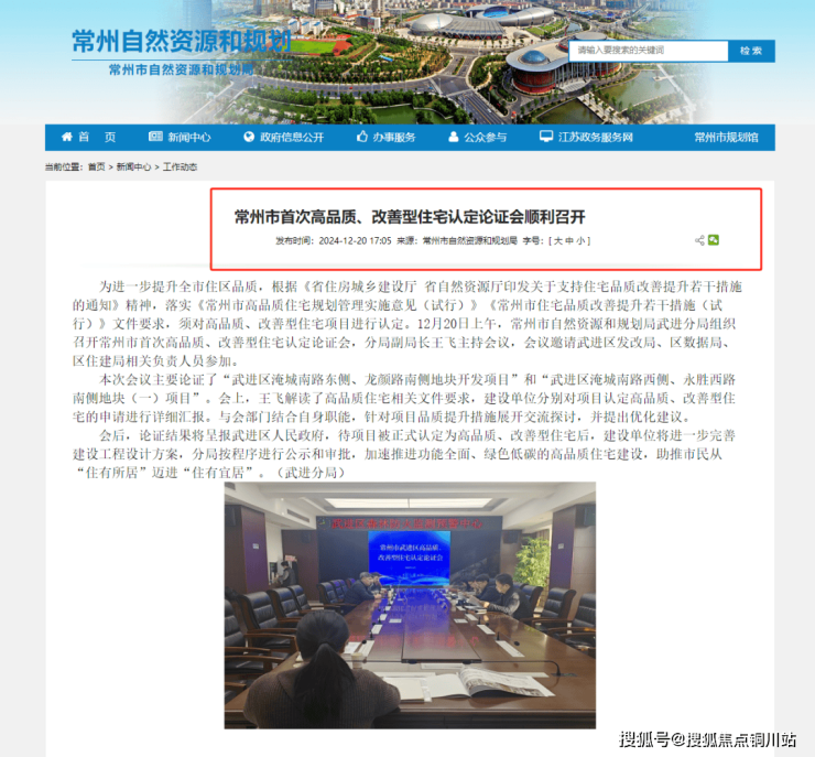 2024年12月20日,常州市自然资源和规划局武进分局组织召开常州市首次高品质、改善型住宅认定论证会,会议上兆地锦绣春秋提案为高品质、改善型住宅。