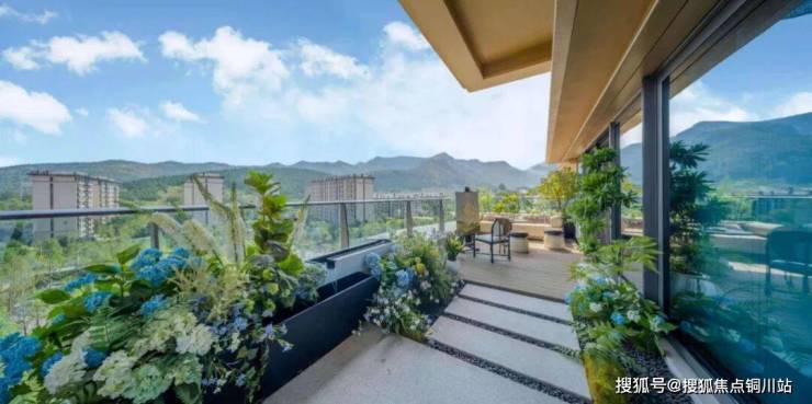 但真正让人心动的,是那个约35㎡的空中花园。得益于四代宅奇偶错层的设计,这里拥有约6.2米的惊人挑高,视野非常开阔。站在这里,山风拂面,鸟鸣入耳,恍惚间竟分不清身在室内还是山间。