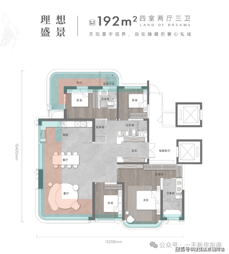 建面约192㎡,提供豪宅大平层的居住体验。