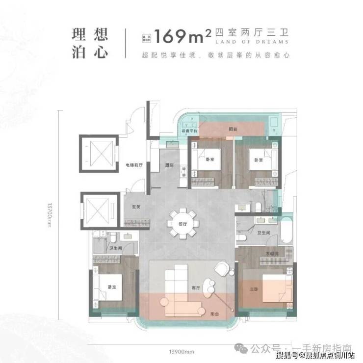 建面约169㎡,为三代家庭量身定制。