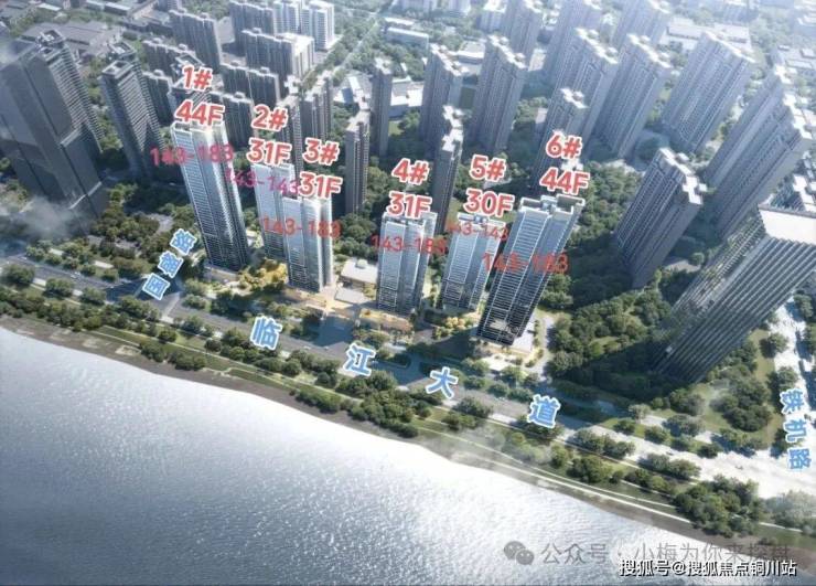 该项目规划有6栋楼,临江一字型排开,全部一线临江,每栋住宅都有不错的观江面。栋栋正观江,前排无遮挡。其中2栋超高层、4栋高层,整体规划定位为改善。项目总建面约8.97万方,项目容积率2.49,总户数约402户,住宅机动车停车位约431个。该项目的人行主入口就在临江大道沿线,在3、4号楼中间,还规划了下沉庭院,而且每栋楼之间有风雨连廊连接,规划有绿化架空层和5个景观小组团组合而成。