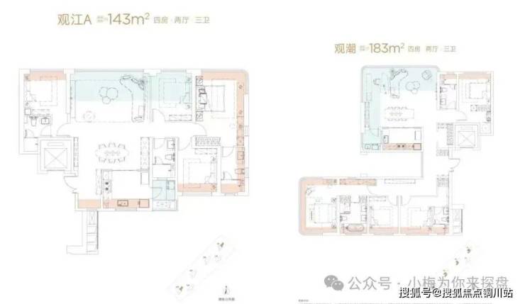 城建江南岸户型图已经更新,也是标准的准四代户型,目前公布有143、183㎡两个户型。算上赠送面积,得房率最高可达113%。而且户型是专门为了看江而优化的,主卧和客厅都有较好的看江视野,尤其是183㎡户型,客厅是270°无遮挡看江。