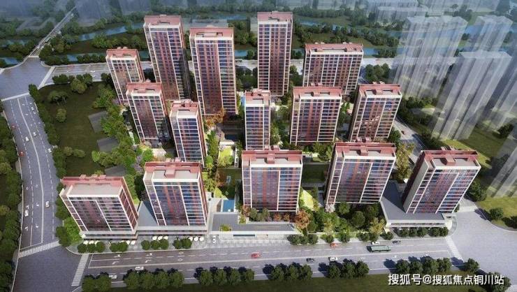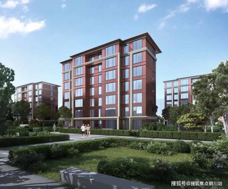 基座干挂温莎米黄石材,主体干挂红色陶板幕墙,并以香槟银金属铝板线条勾勒出腰线,搭配落地系统窗,洋房还有陶瓦和铝板屋檐组成坡屋顶……