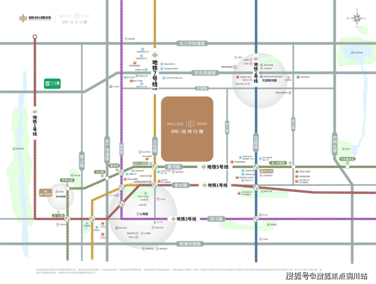 郑轨·经纬归臻,以地铁5、7(在建)交汇枢纽为纽带,串联城市公园,形成一个满足人们居住、购物、出行、休憩的多功能“公园里”TOD社区。