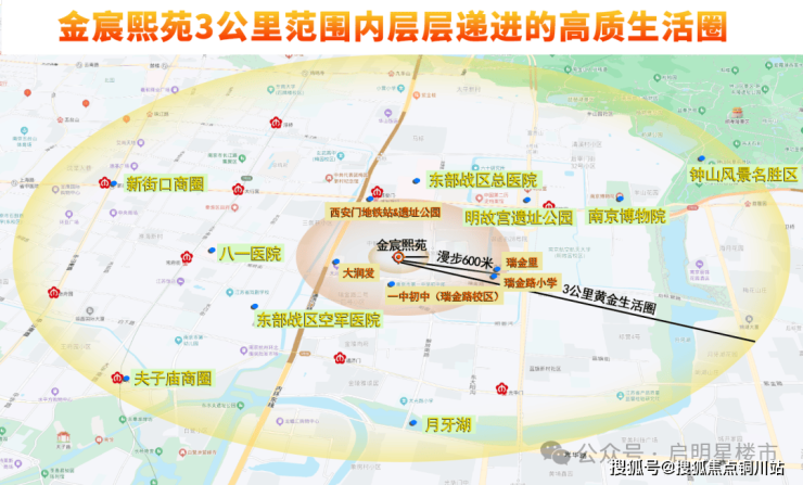金宸熙苑位于中山东路与龙蟠中路交汇处,在主城地段的加持下,项目坐拥主城顶级城市资源,从家楼下到600米步行距离再到3公里生活半径,高质量生活圈层层递进。