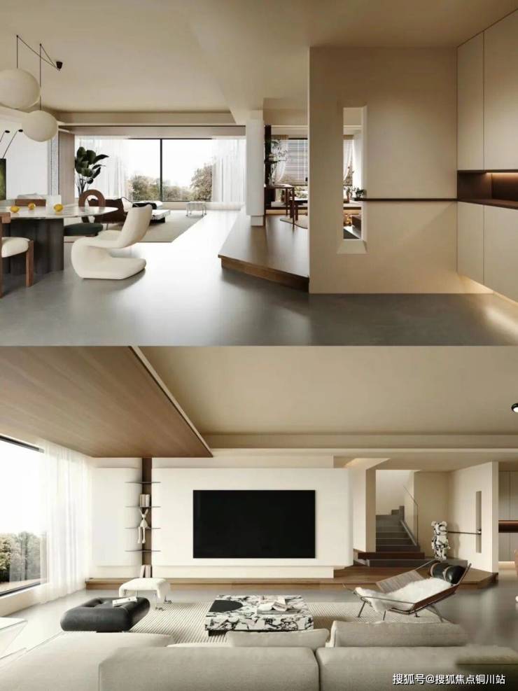 最后是格局上的全面颠覆。当两户打通之后,我们在功能空间的设计上也有了更多的可能。一层纯粹功能空间,设置餐客厅、书房、工作室、影音室等等;二层则是纯粹起居空间,设计大尺度双套房+阔尺次卧or大尺度双套房+双次卧,完美动静分离,随心设计。这样的居住体验,即便是大平层也很难比拟了。